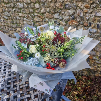 Celebrate the season with timeless elegance. Belle de Noël—a luxurious bouquet of crimson blooms, snowy whites, textured berries, and delicate dried florals—crafted to bring warmth, beauty, and holiday magic to every space.